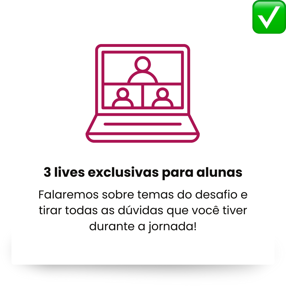 Após a confirmação do pagamento, você recebe o acesso por e-mail e WhatsApp com as instruções para entrar no desafio e no grupo.